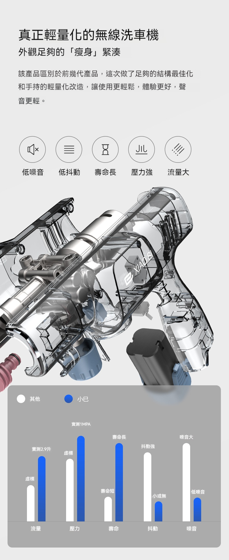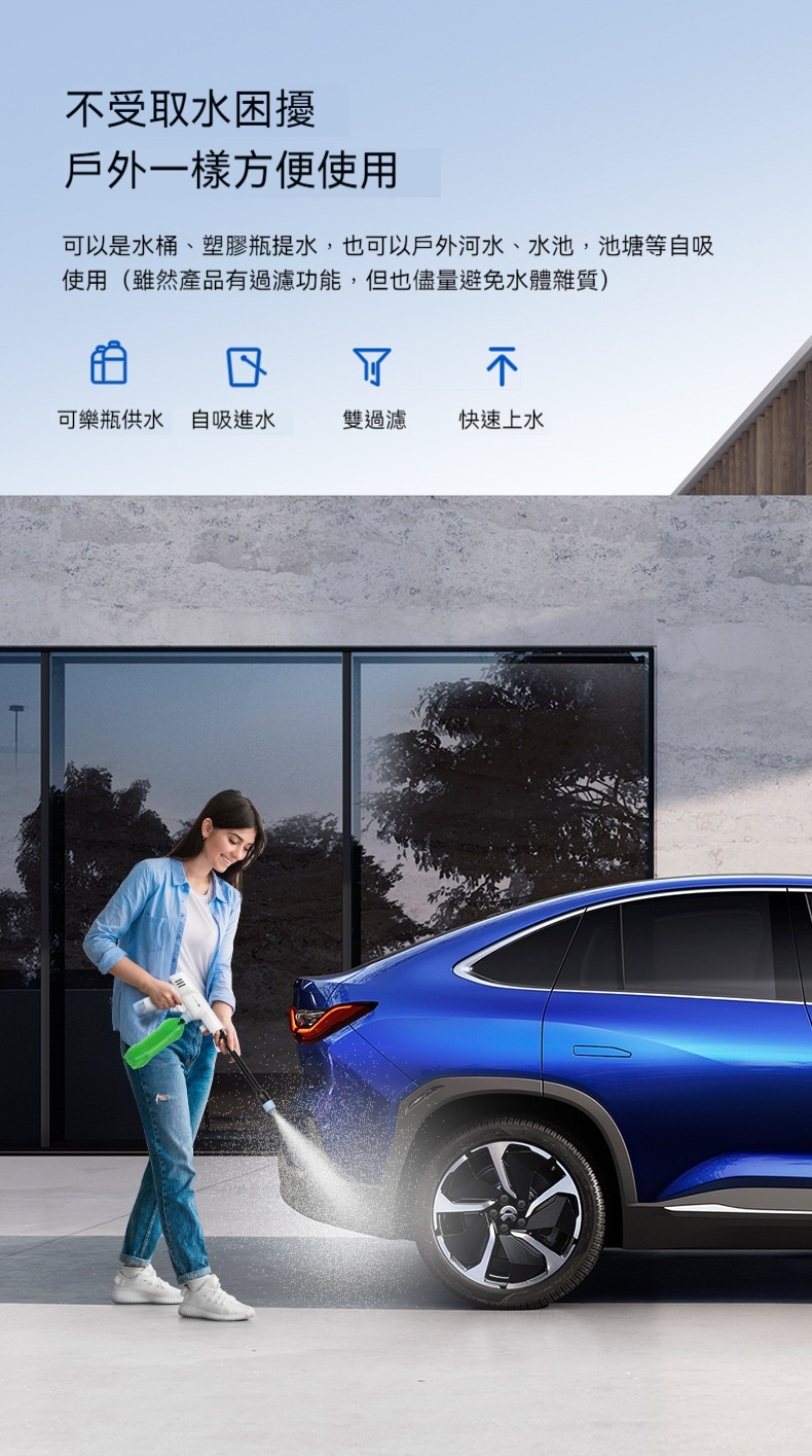 【🛒開啟自由洗車新時代】✅ 真正輕量化: 單手操作不費力,洗車也能很優雅 😌 ✅ 強勁大流量: 獨立高效泵頭,高壓水流直擊頑固污垢 💥✅ 水源不受限: 溪水、水桶自吸,隨處都能洗車 🏞️
